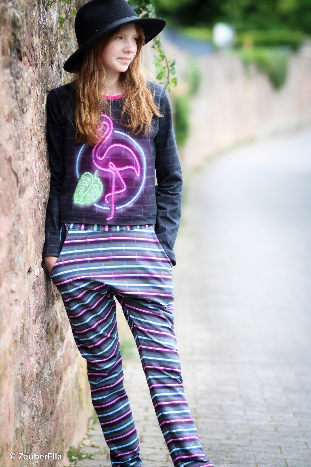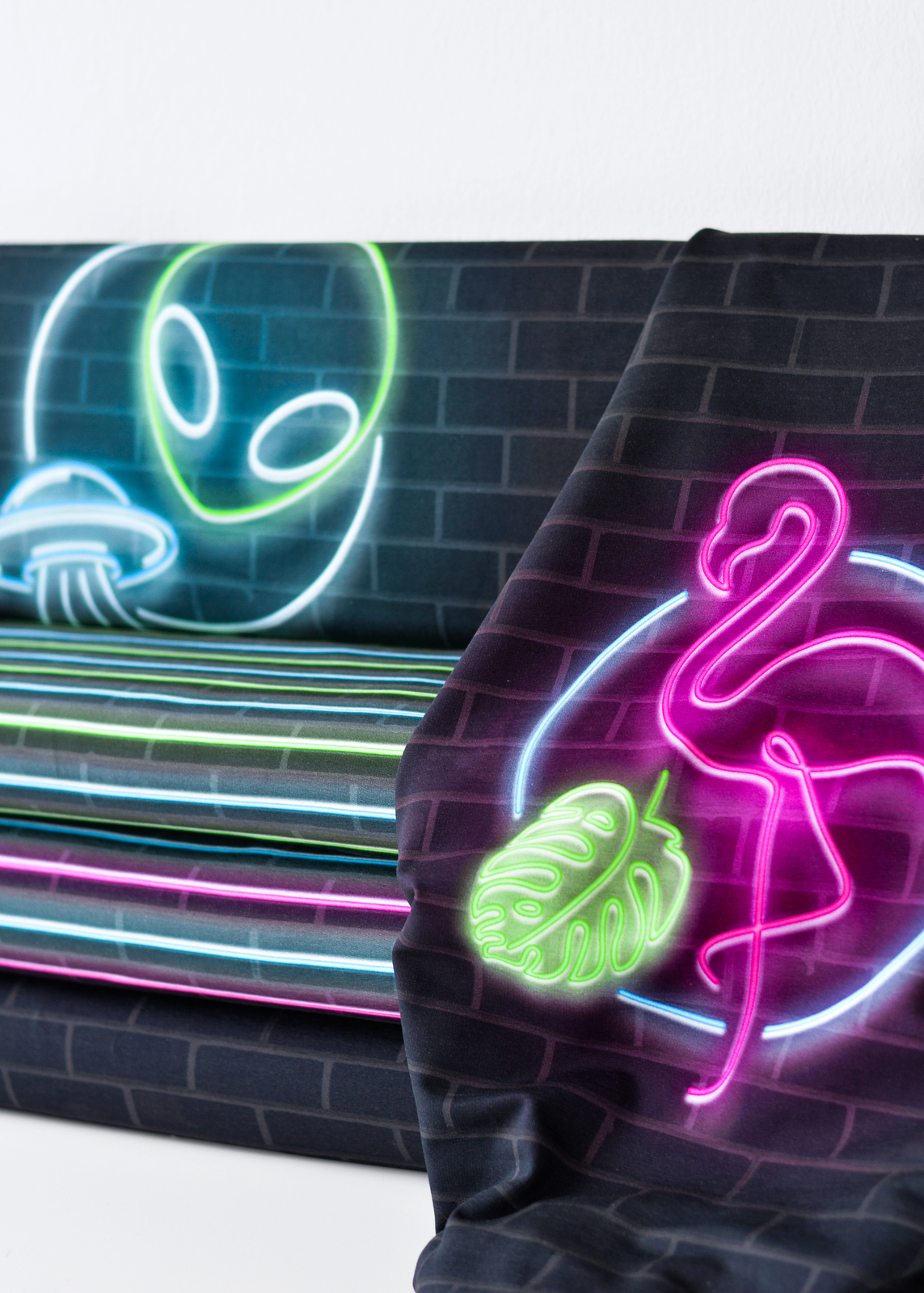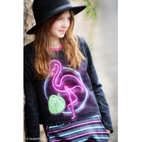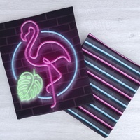 *2 PIECE BUNDLE DEAL* European Knit, French Terry, Oeko-Tex, Glow Flamingos Panel 74cm & Glow Stripes Bright Pink/Light Blue