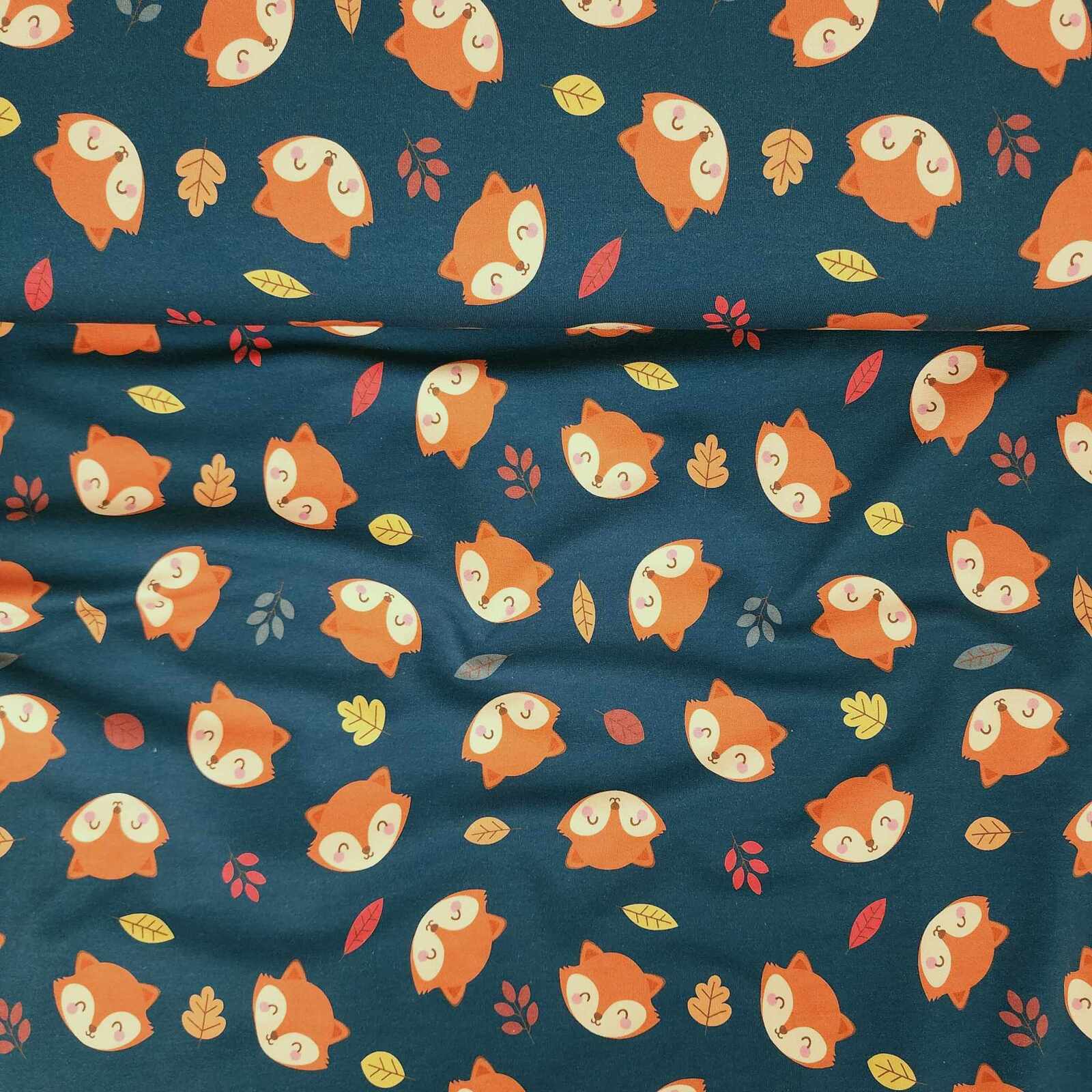 *2 PIECE BUNDLE DEAL* European Knit, Oeko-Tex French Terry, Foxes Dark Peacock/ Orange Ribbing