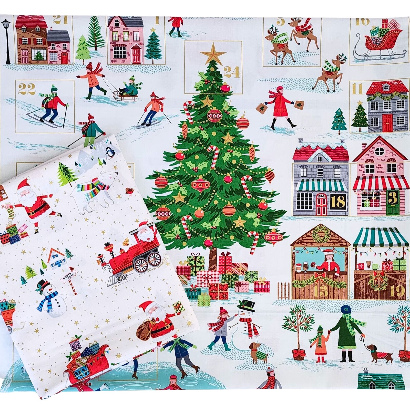 *2 PIECE BUNDLE DEAL* Makower UK, Advent Panel Metallic 60cm & Placement White Metallic