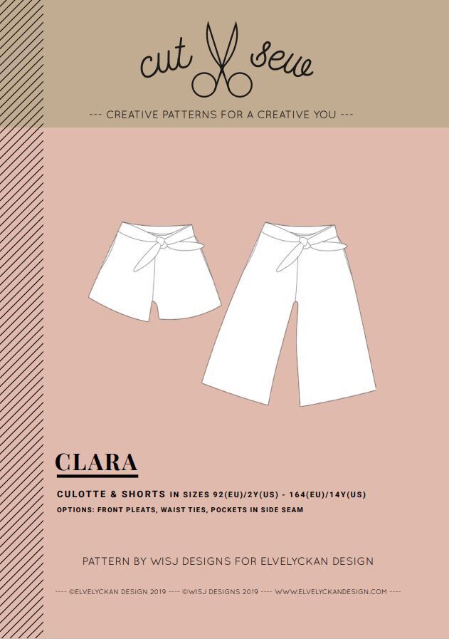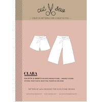 CLARA is a Culotte & Shorts pattern with the optiosn of: front pleats, waist ties & pockets in side seam
