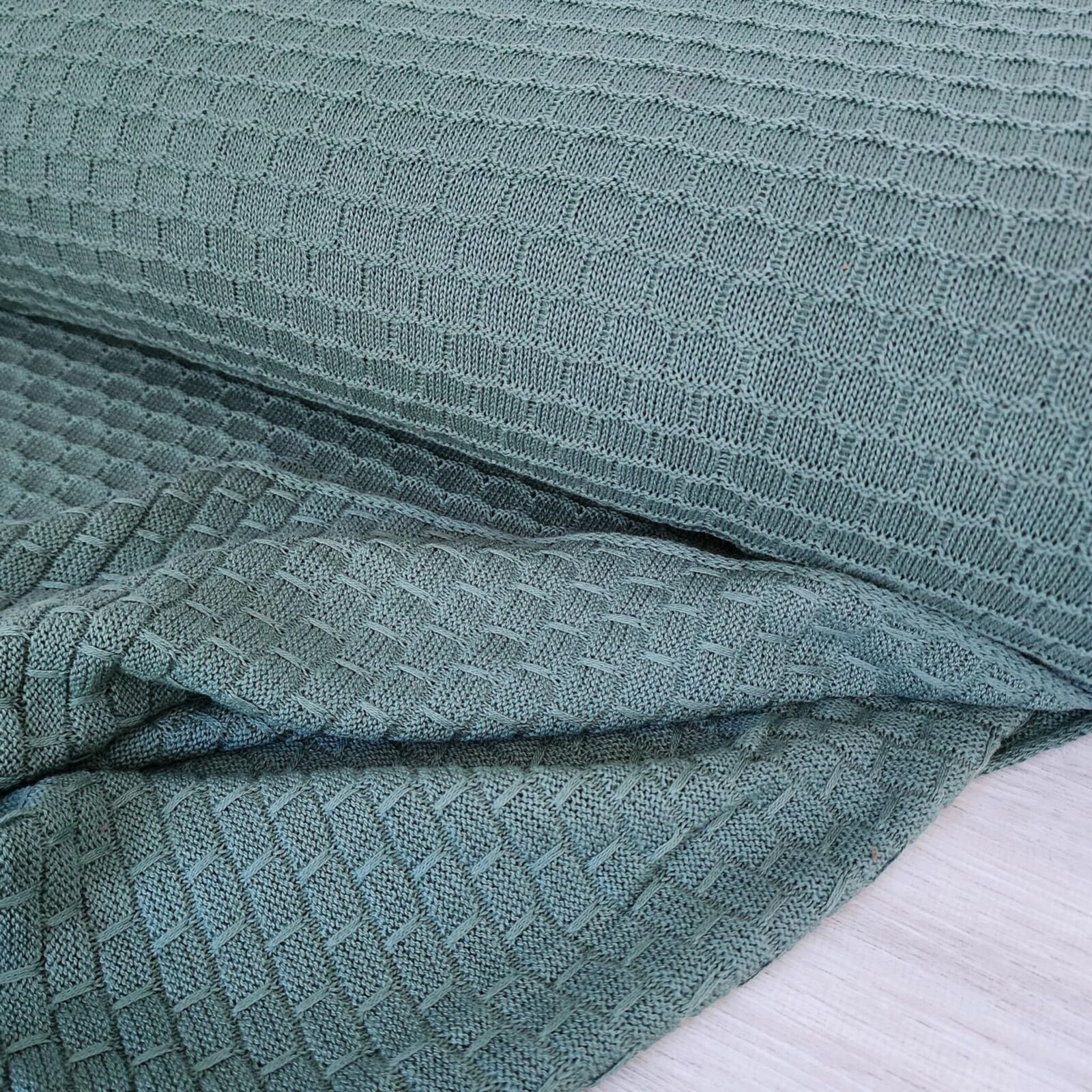 Remnant 155cm** European 100% Cotton Lattice Textured Knit, Oeko-Tex, Eucalypt