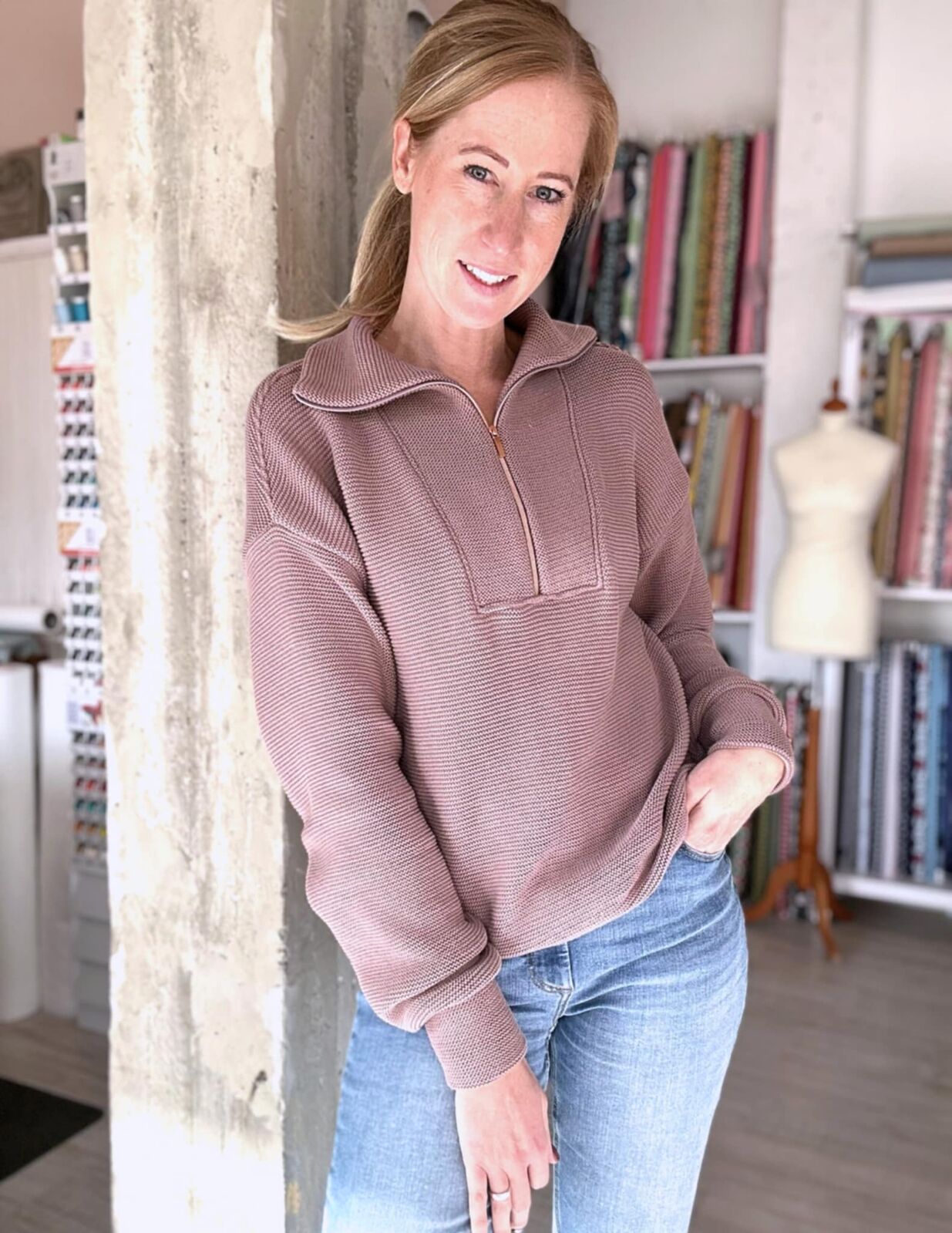 This fabric is a beautiful soft cotton knit with a fine cable knitted pattern that runs with the grain (parallel to the selvedge). The cable pattern has a textured look with a wonderful loose drape and soft handle, and is ideal for adult & children’s jumpers, cardigans, scarves, beanies & blankets.