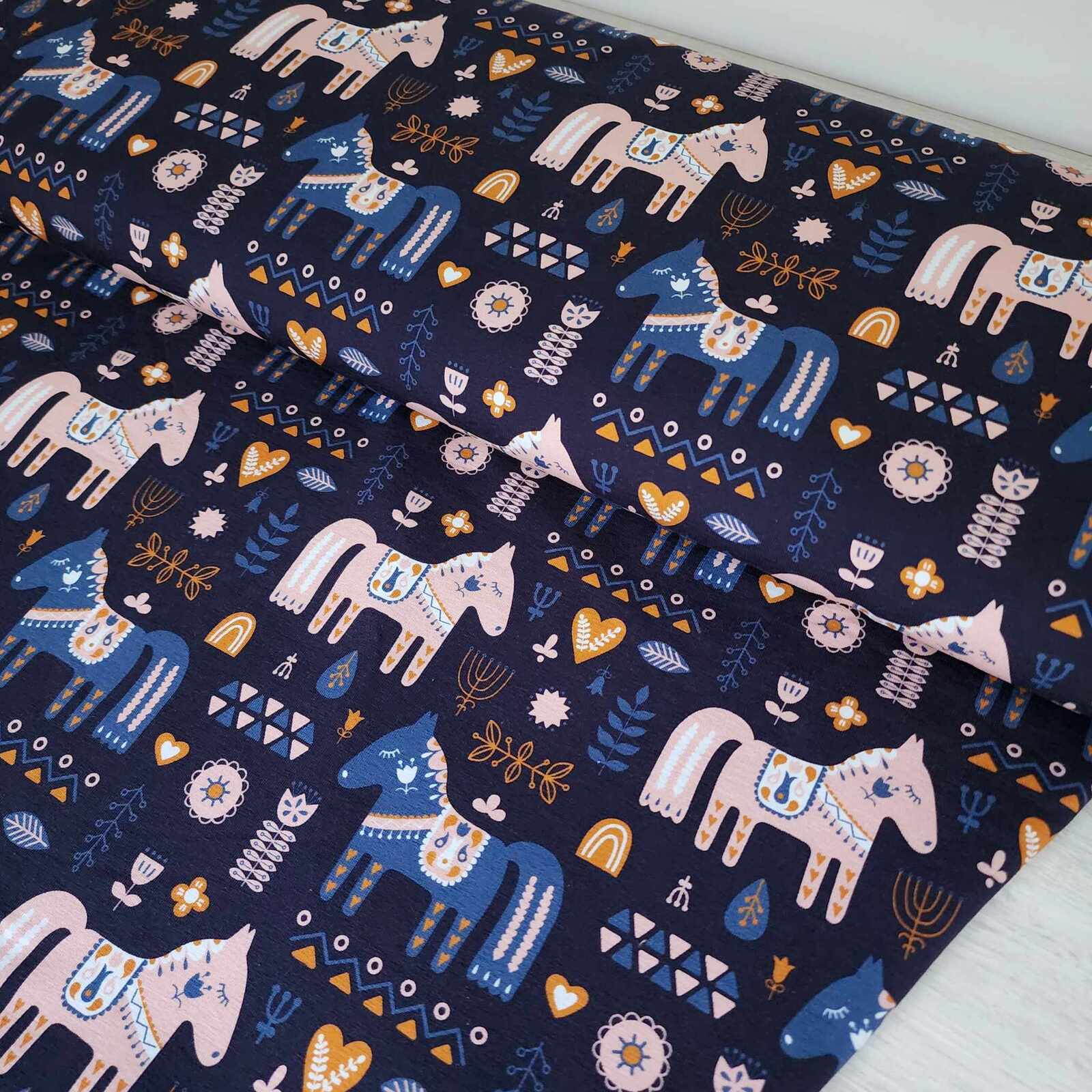 Remnant 81cm **Cotton Elastane Jersey, Oeko-Tex, Scandi Pony Blue