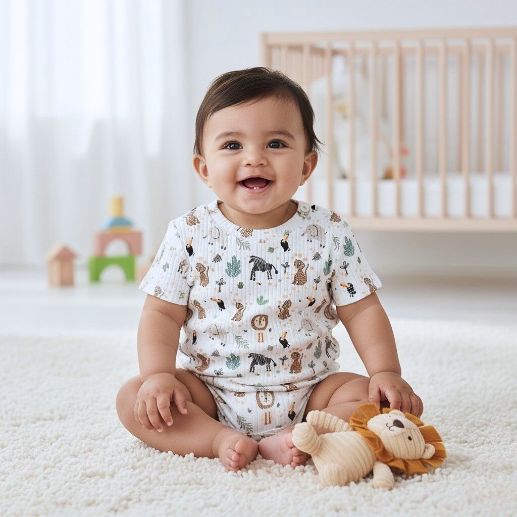 European Cotton Ribbed Pointelle Jersey, Oeko-Tex, Baby Animals
