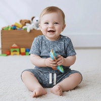European Cotton Ribbed Pointelle Jersey, Oeko-Tex, Dinosaurs Dark Melange Sage Blue