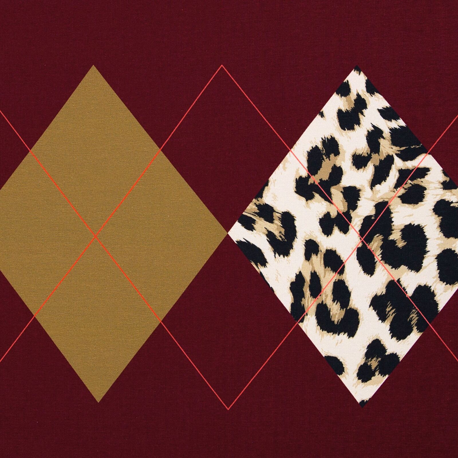 European Knit, Oeko-Tex, French Terry, Argyle Luxe Antique Ruby 100cm PANEL