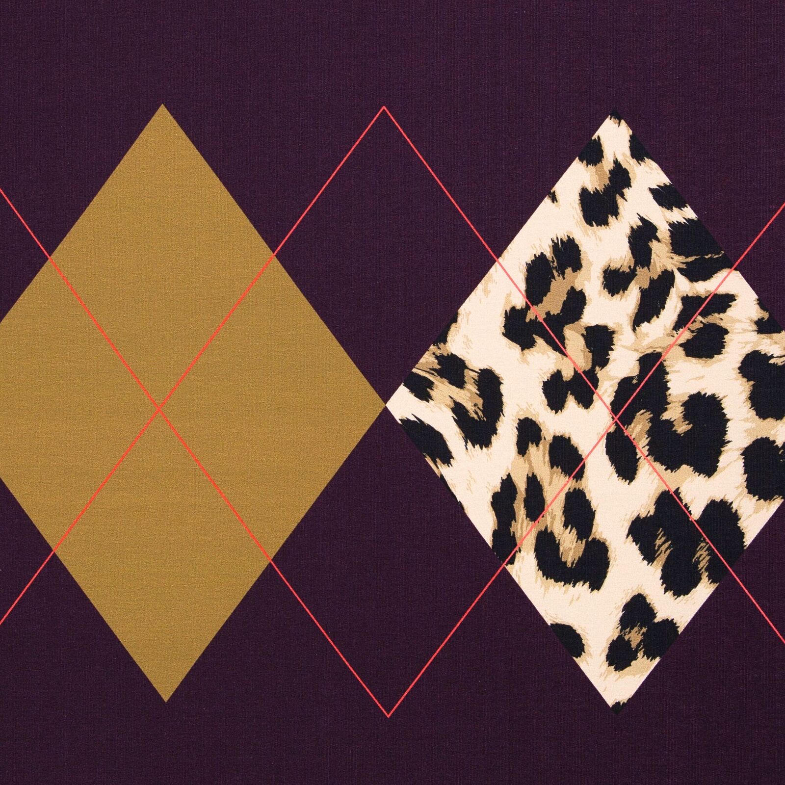 European Knit, Oeko-Tex, French Terry, Argyle Luxe Obsidian Plum 100cm PANEL