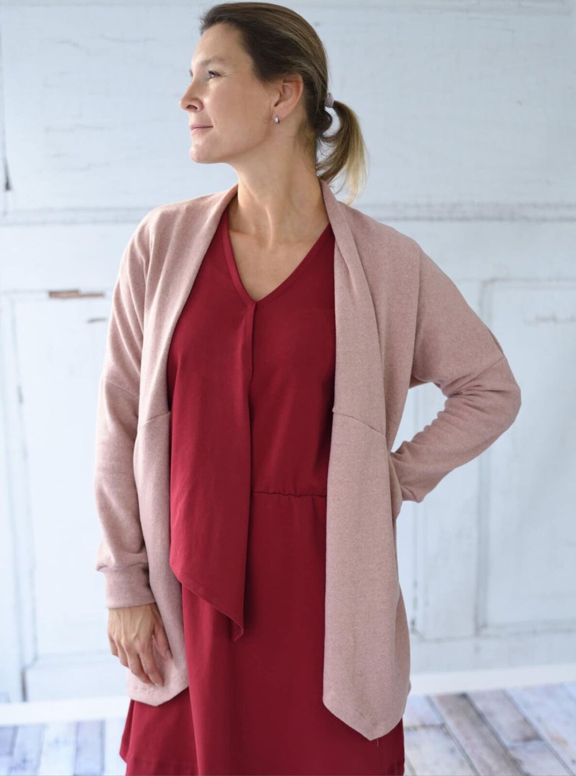 Our heavier winter weight variety of this knit: it is lovely and warm and perfect for winter sewing (we also carry a lighter weight version).
