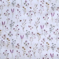 European 'Linen Look' Cotton Double Muslin, Oeko-Tex, Lavender Meadow White