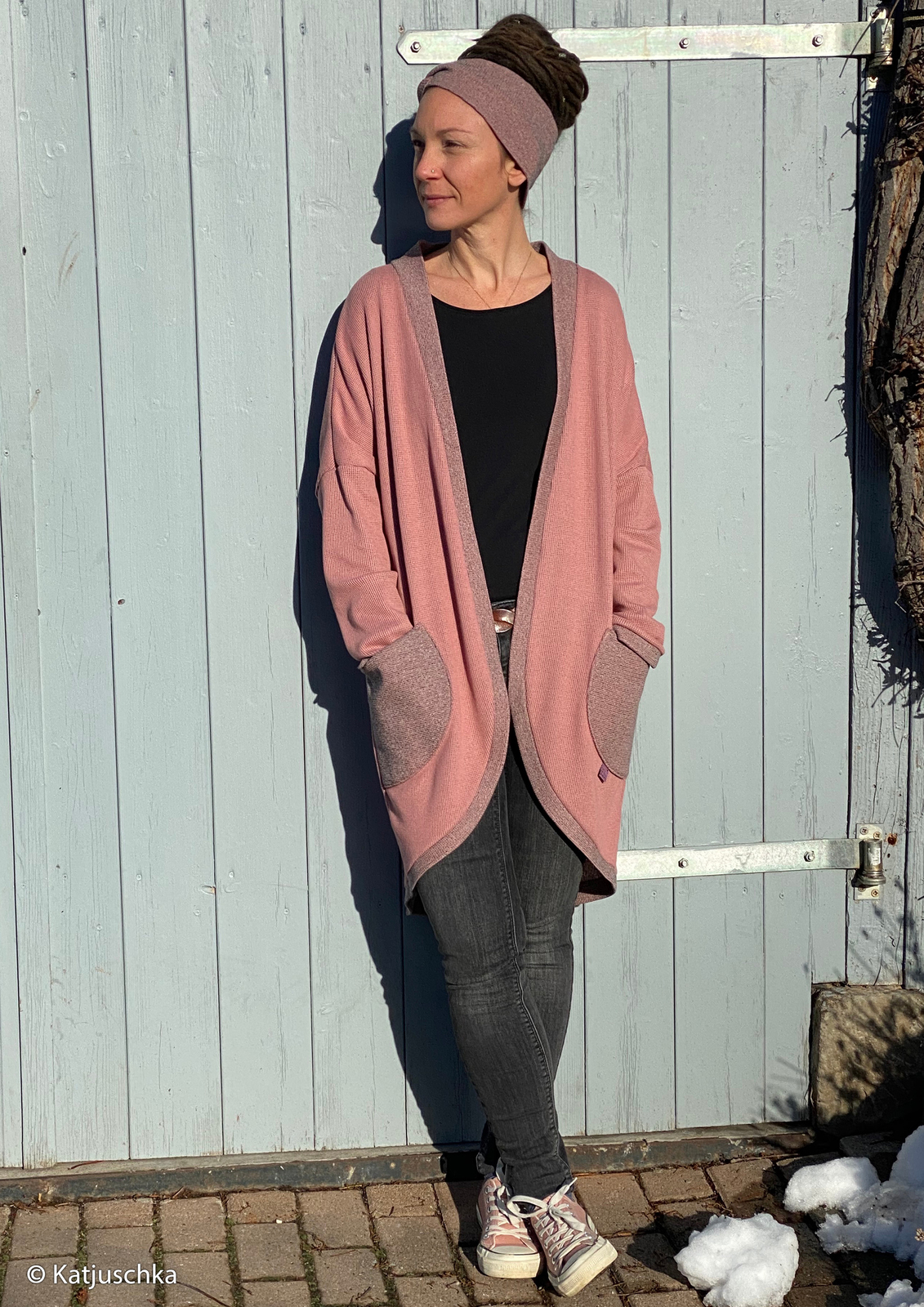It is delightfully soft with a nice stretch, has a lovely draping to it and is the perfect seasonal knit for many garments: jumpers, cardigans, tunics etc. Soft and very comfortable to wear.