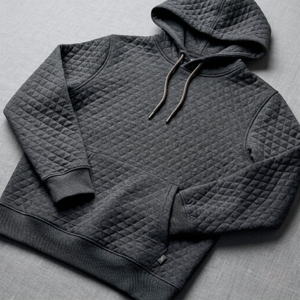 This double-sided quilted sweater knit features a cotton jersey outer with a diamond pattern on both sides, and a lightly padded inner layer for extra warmth and structure.