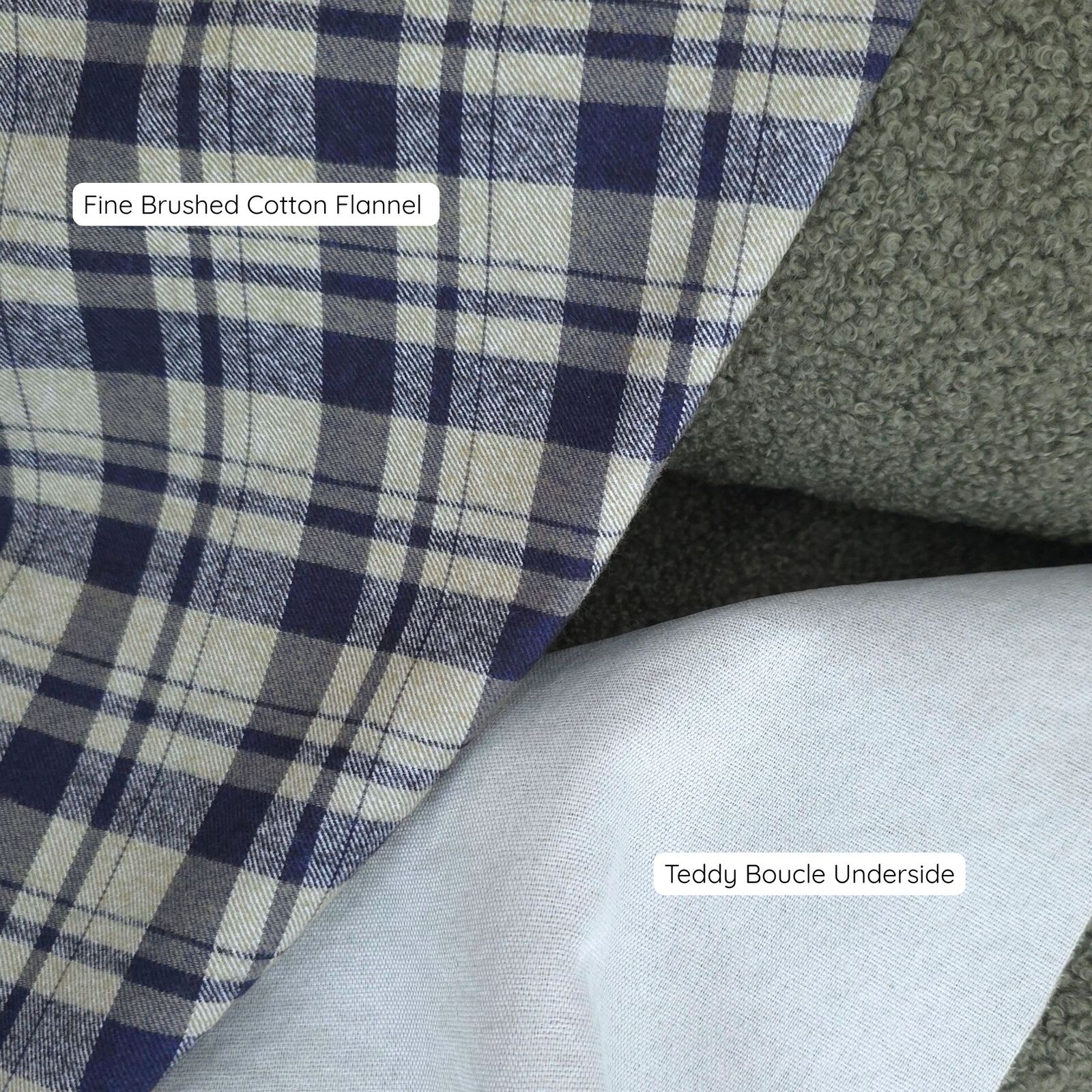 The fabric features a smooth, soft underside that can be easily lined for extra comfort. For a great lining fabric, we recommend pairing it with our Fine Brushed Cotton Flannel & Belgian Waffle Knit, which complement its plush texture beautifully.