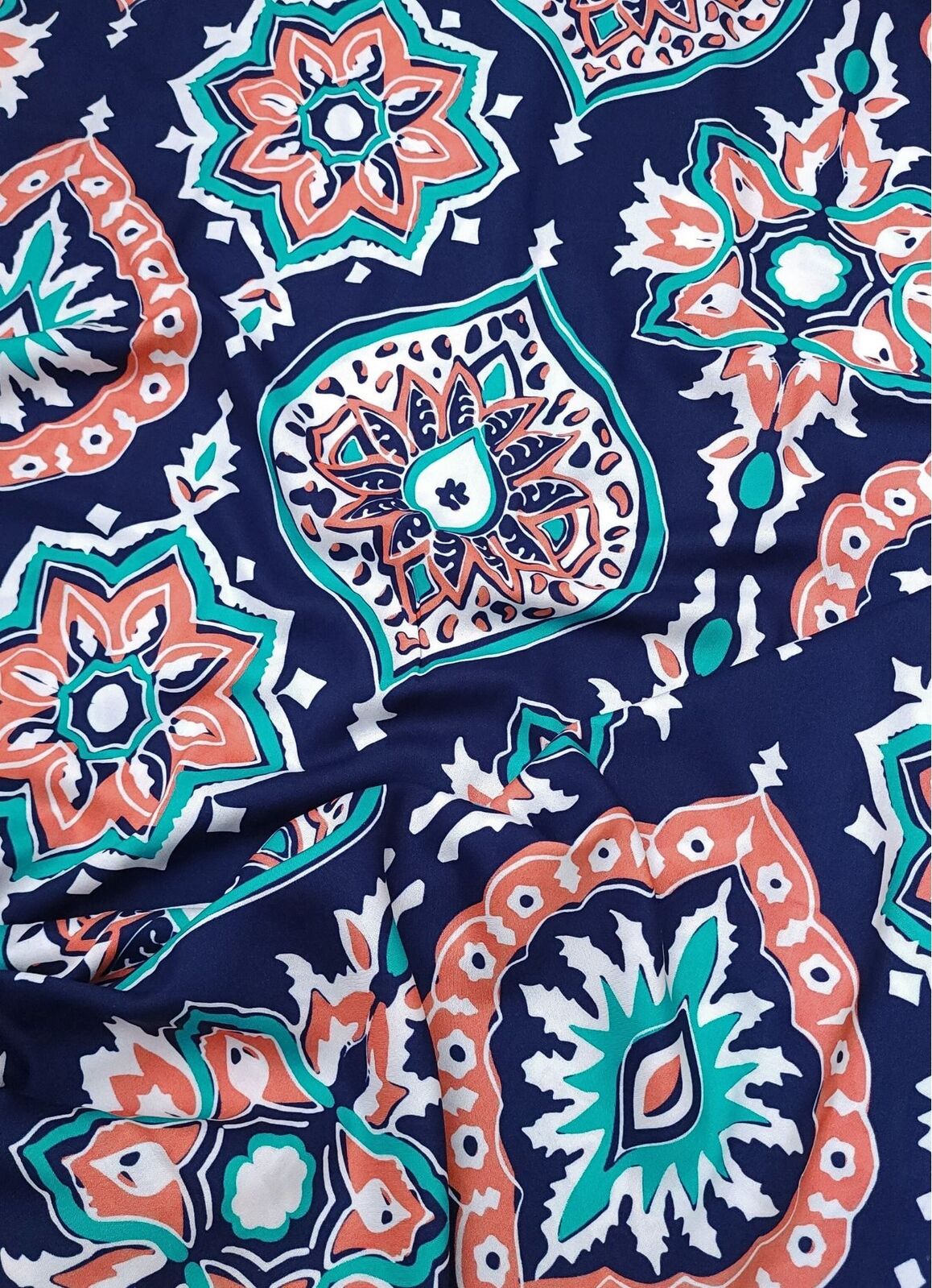 European Woven Viscose, Oeko-Tex, Moroccan Medallion Navy