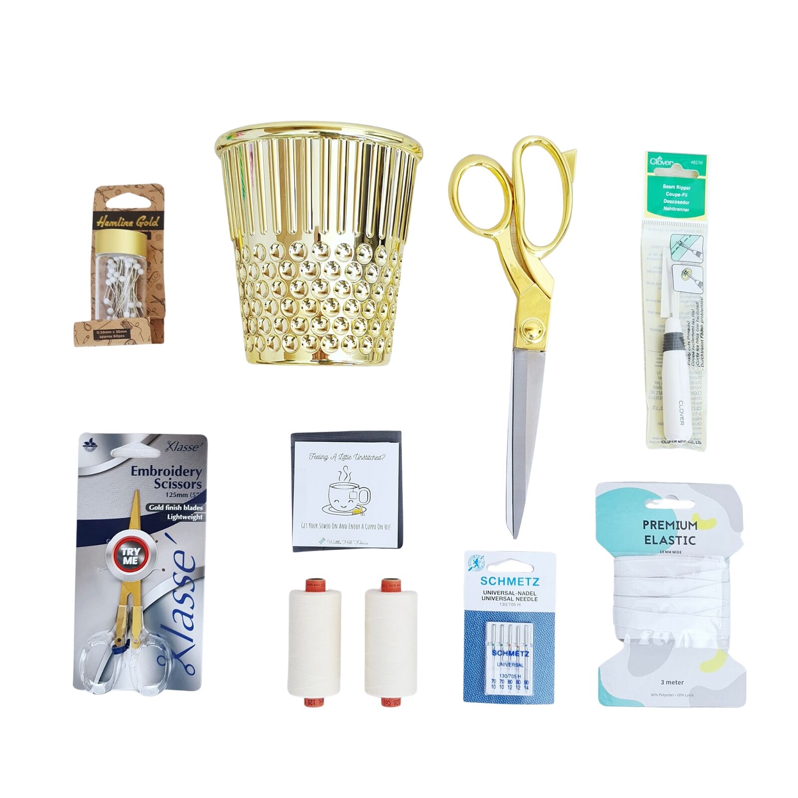Inside your Gold Thimble Gift Set: