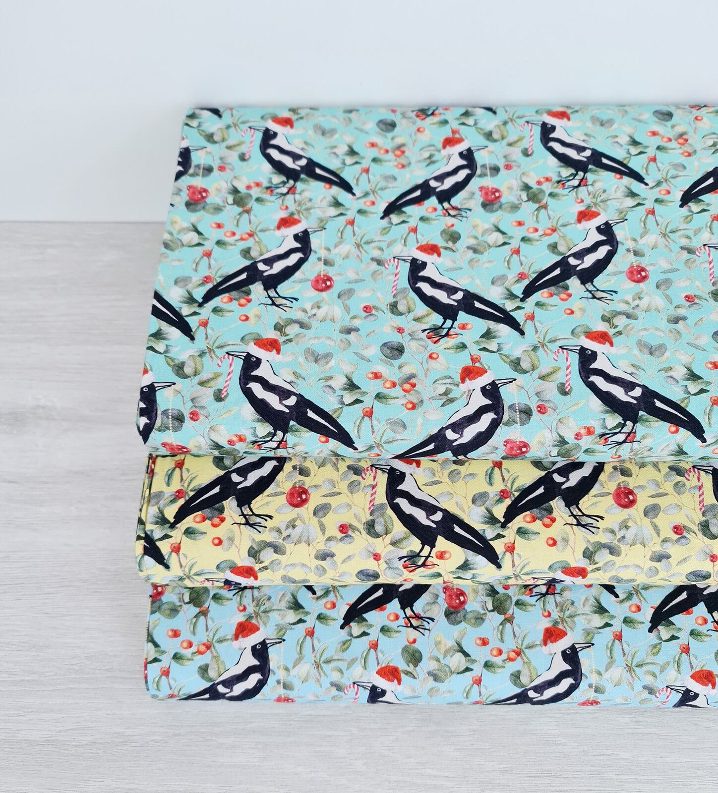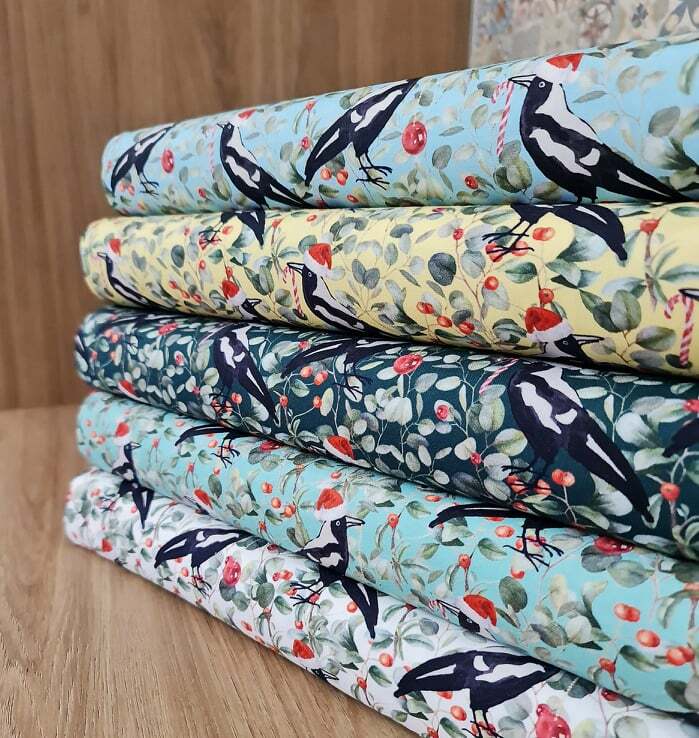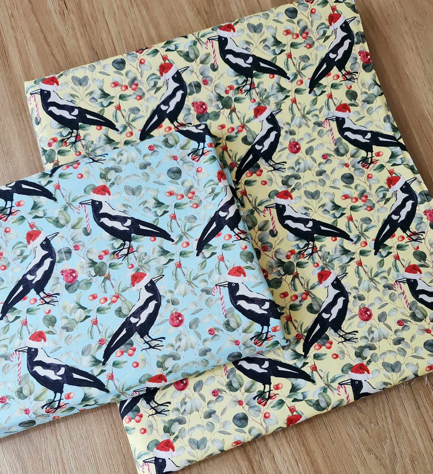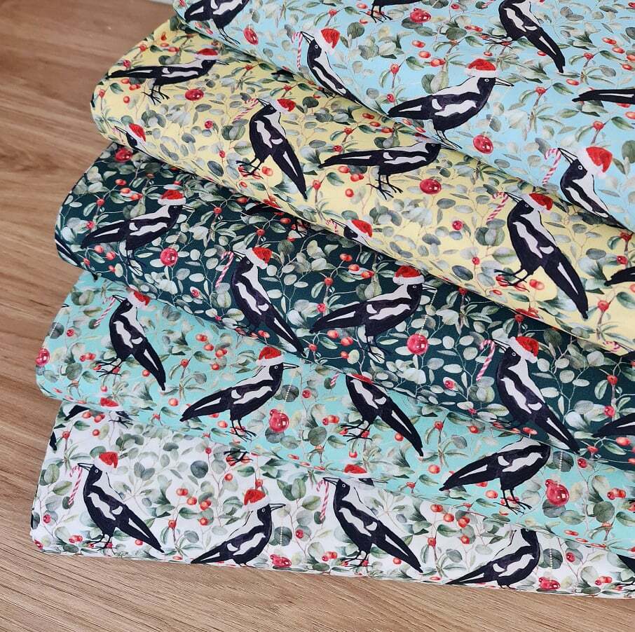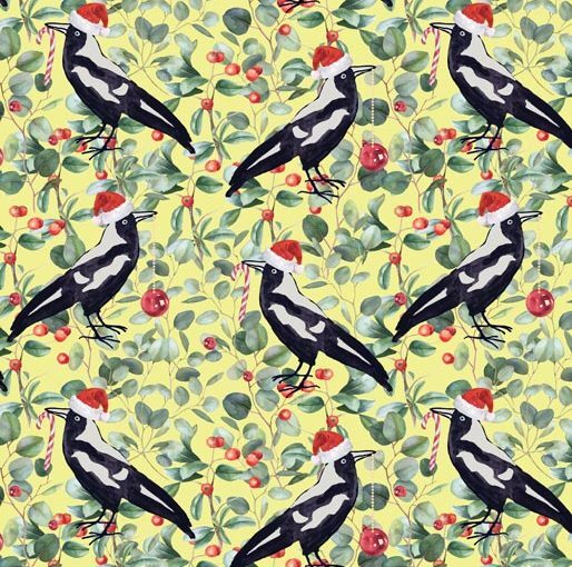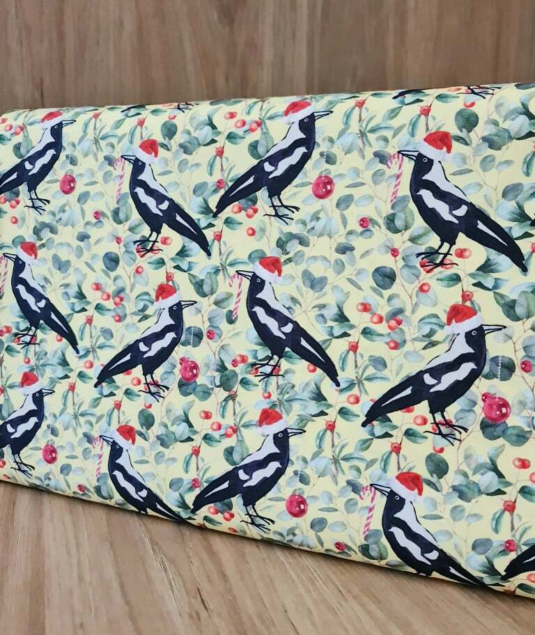 • *REMNANT 47cm* KK Fabrics, Unalloyed Aussie Christmas, Magpies Carols Sunshine