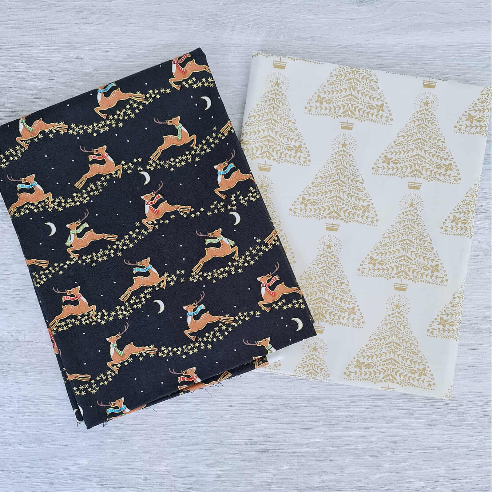• Makower UK, Merry Christmas, Flying Reindeer Black Metallic