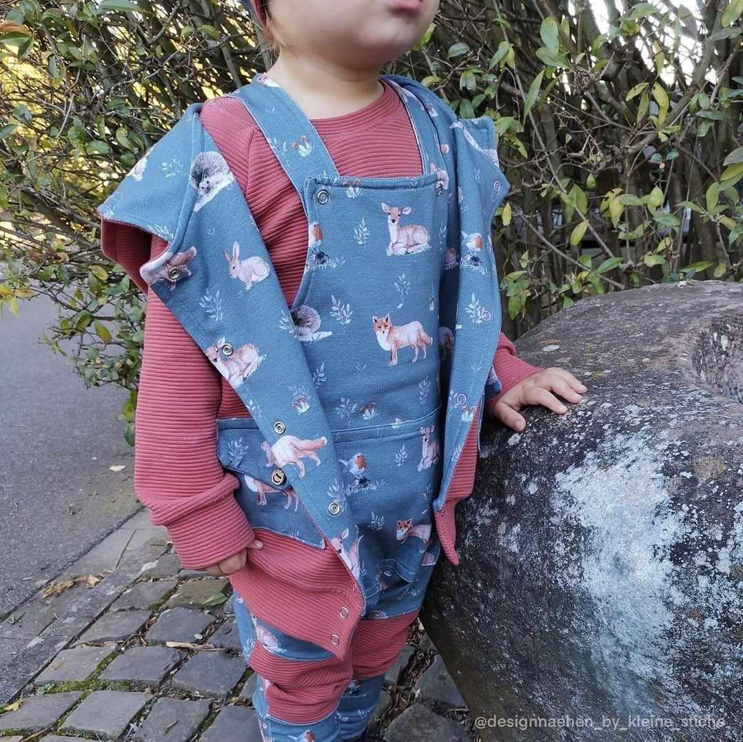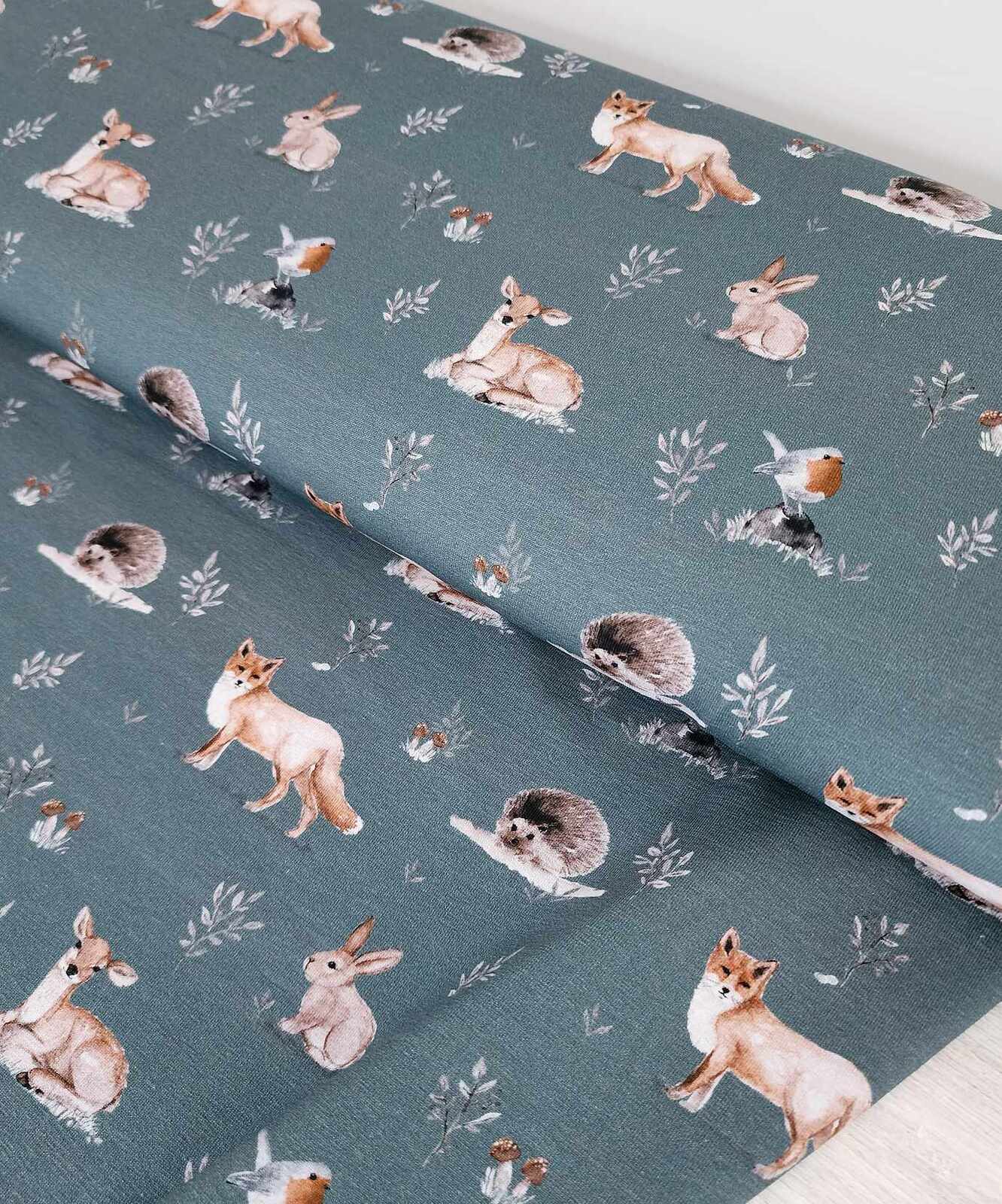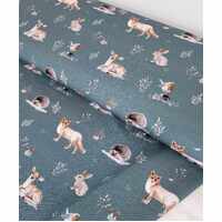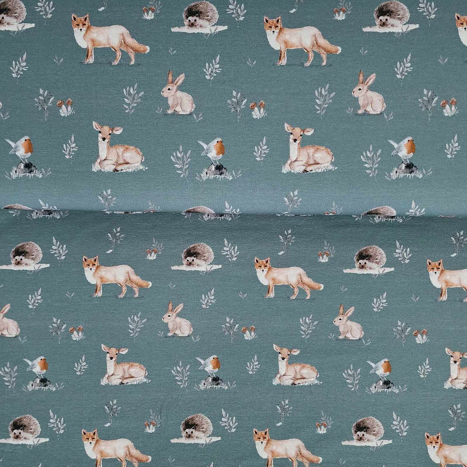 *REMNANT 102cm* European Cotton Elastane Jersey, Oeko-Tex, Forest Friends Steel Teal