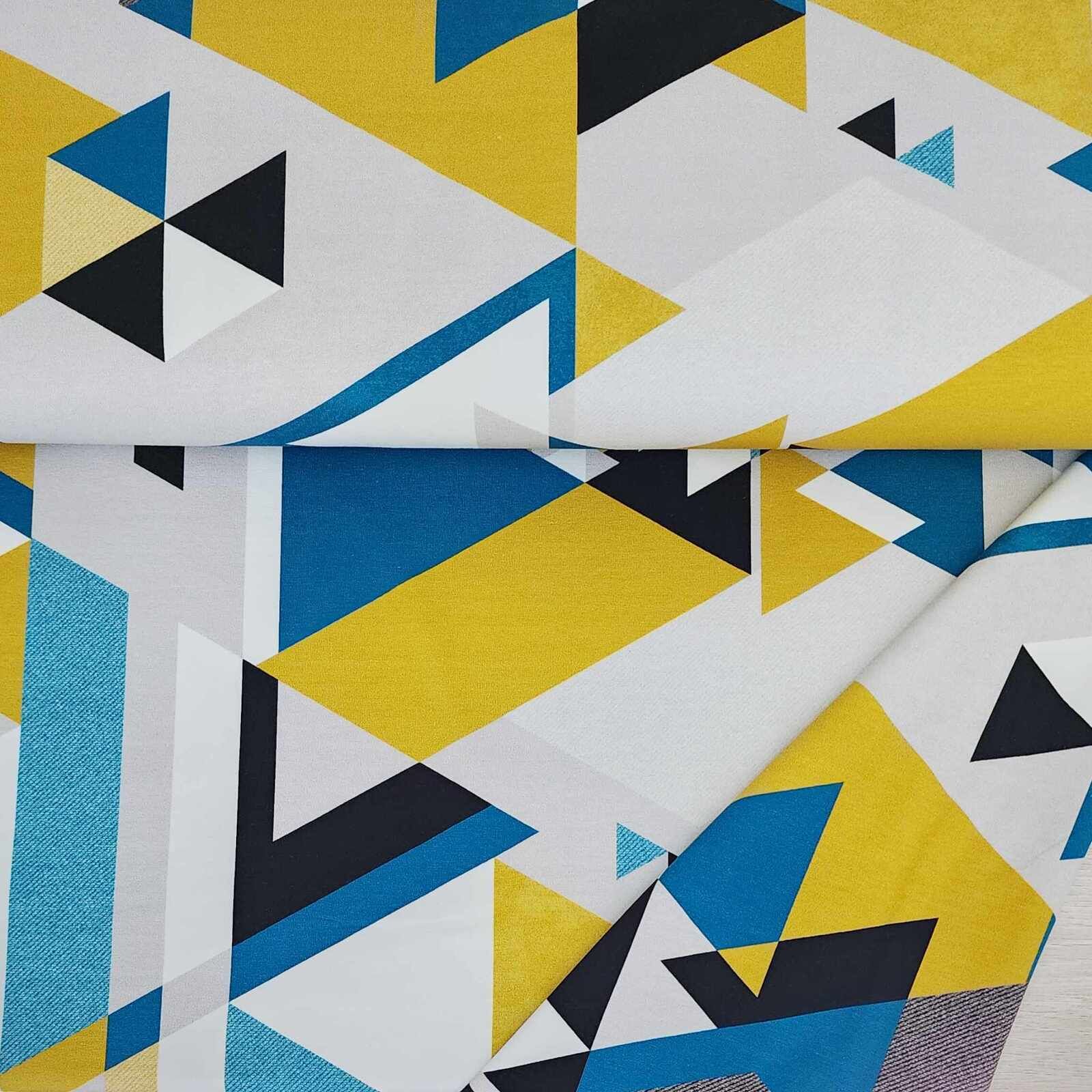 *REMNANT 109cm* European Knit, Oeko-Tex French Terry, Triangles Petrol