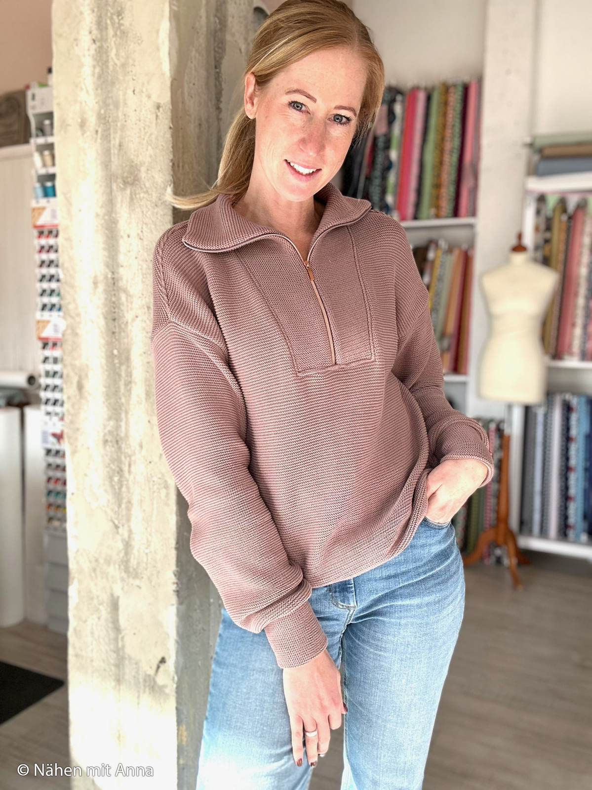This fabric is a beautiful soft cotton knit with a fine cable knitted pattern that runs with the grain (parallel to the selvedge). The cable pattern has a textured look with a wonderful loose drape and soft handle, and is ideal for adult & children’s jumpers, cardigans, scarves, beanies & blankets.
