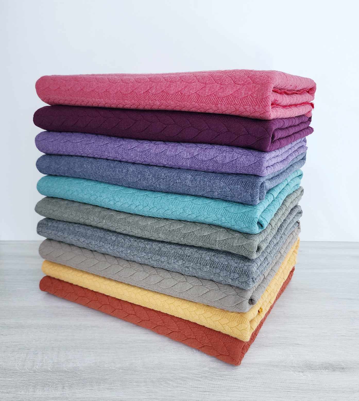 Cable Knit features a smooth, flat underside with that classic textured cable pattern on the top side of the fabric.