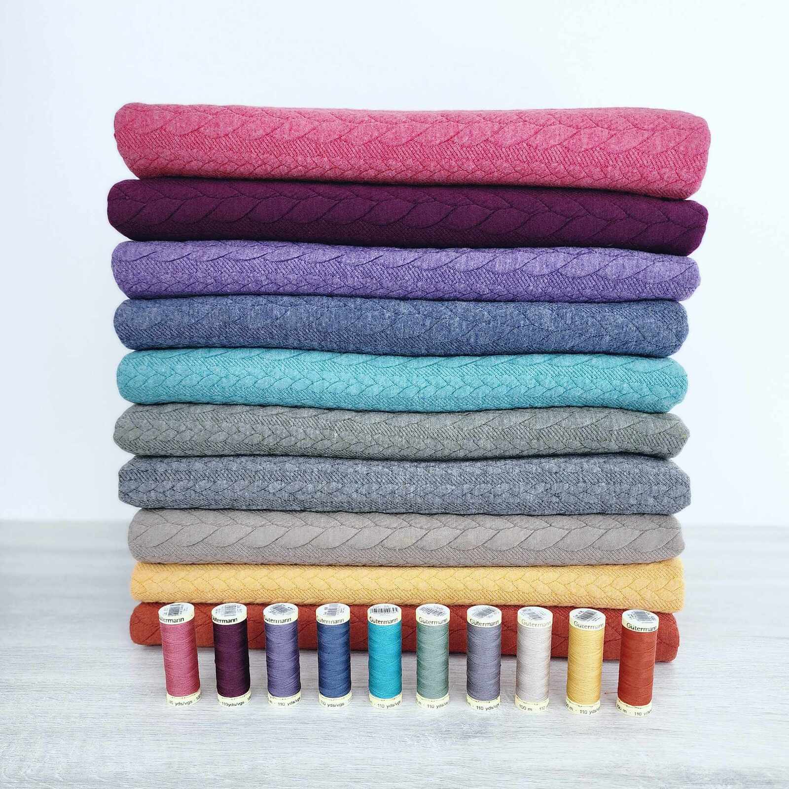 Our European-made Cable Sweater Knit is a lovely soft blend of Viscose, Polyester & Elastane.