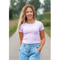 Despite the intricate design, the tiny holes in the fabric are so subtle that the material remains opaque. This airy, lightweight fabric feels gentle on the skin, offering all-day comfort with a soft drape and natural breathability.