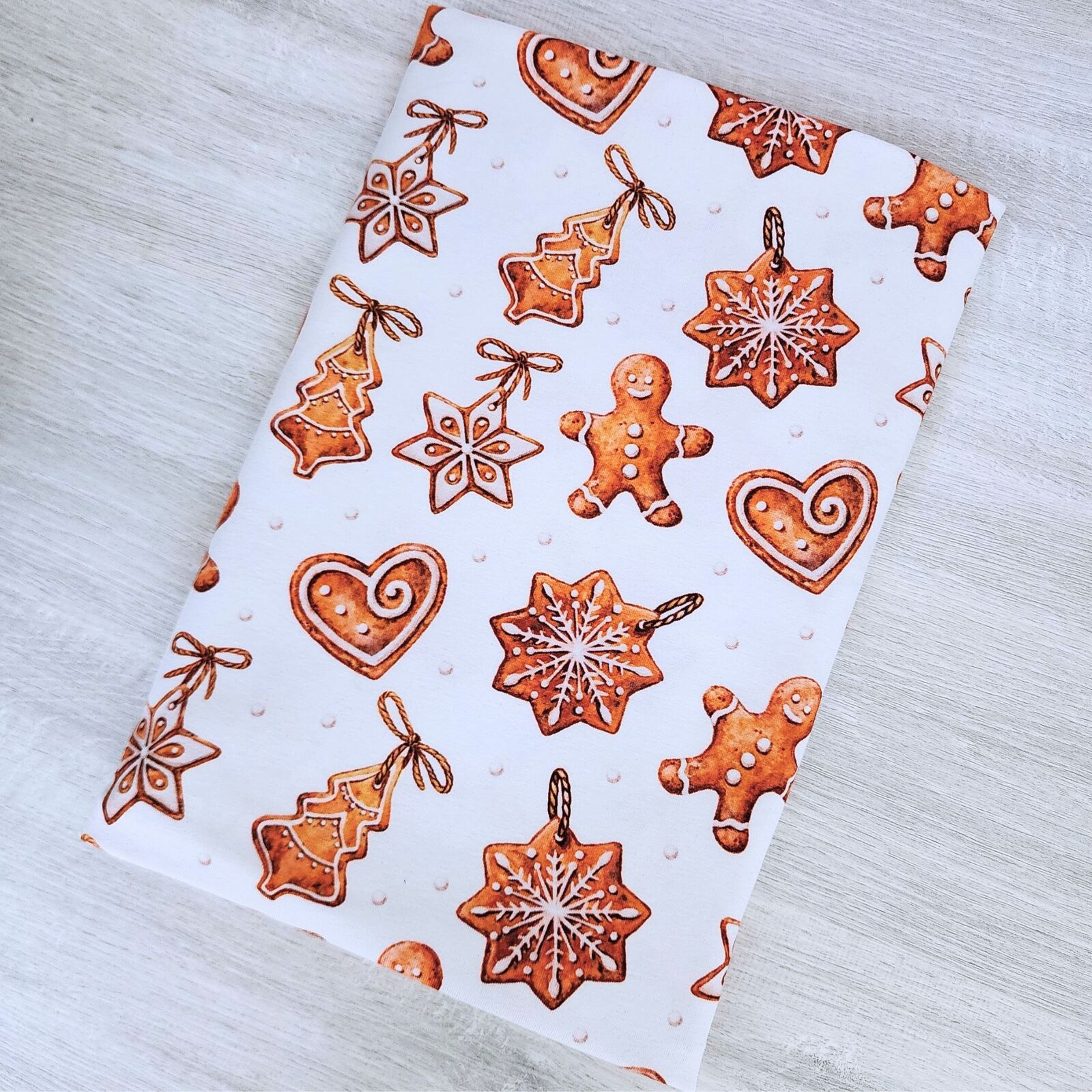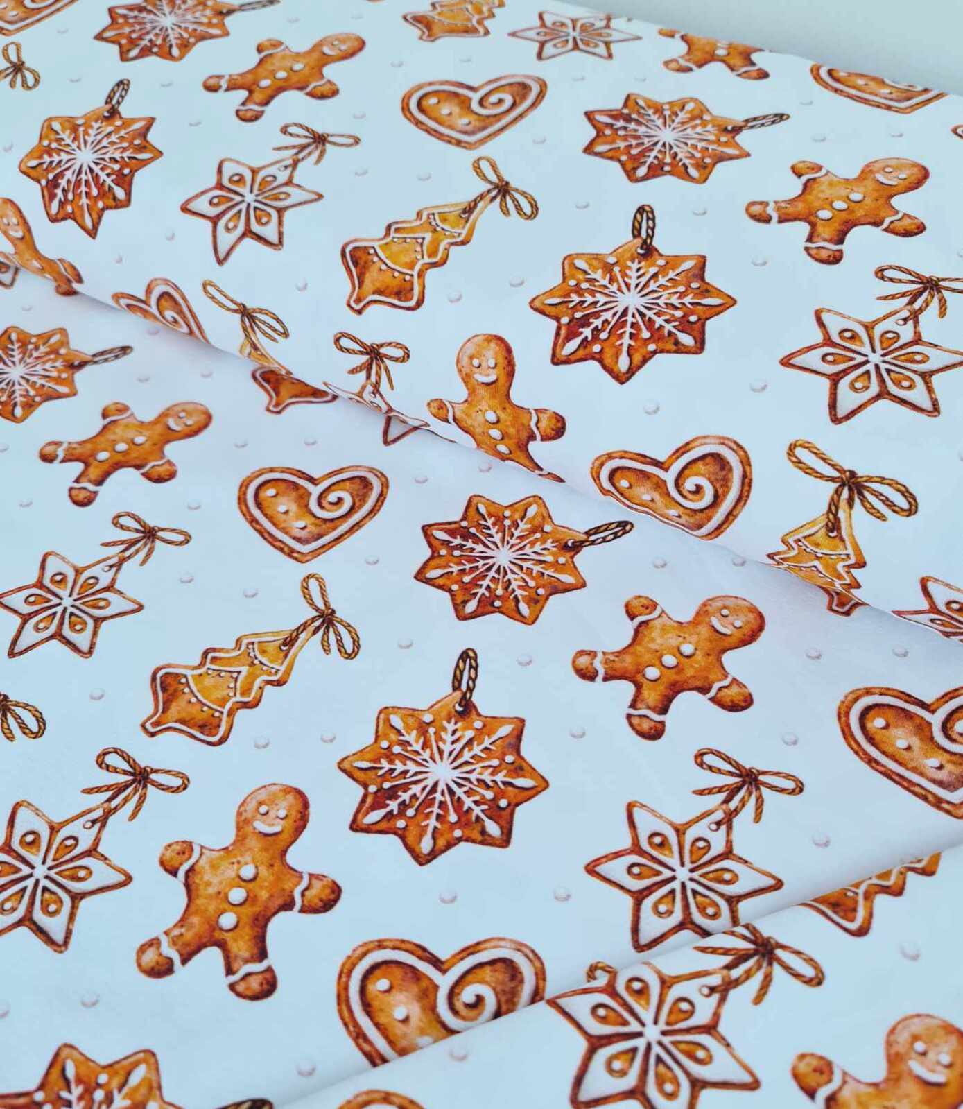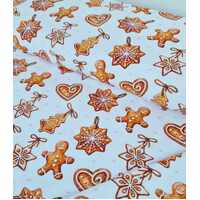 *REMNANT 120cm* European Cotton Elastane Jersey, GOTS Organic, Gingerbread Ornaments