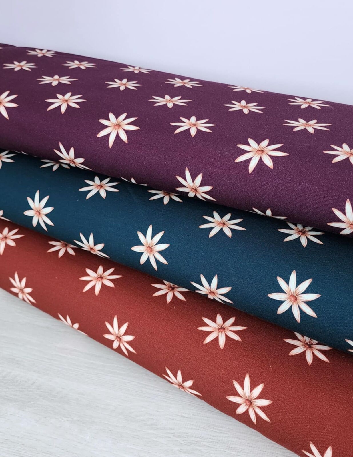 A mid-weight knit that is perfect for year-round sewing that makes fantastic jumpers, shorts, dresses etc. In colder climates – this is a great layering fabric under coats & jackets during winter.
