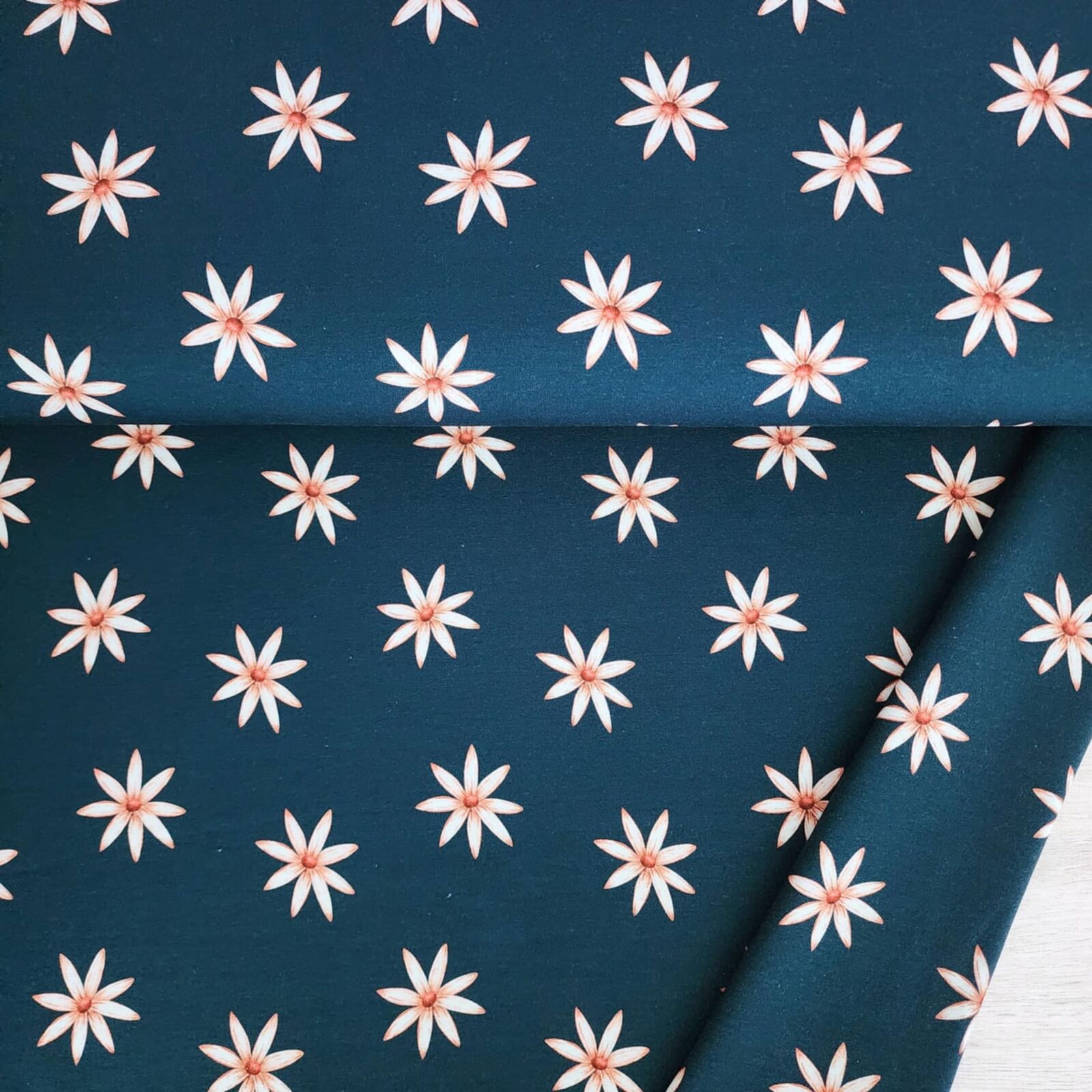 *REMNANT 127cm* European Knit, Oeko-Tex, French Terry, Autumn Daisy Dark Peacock