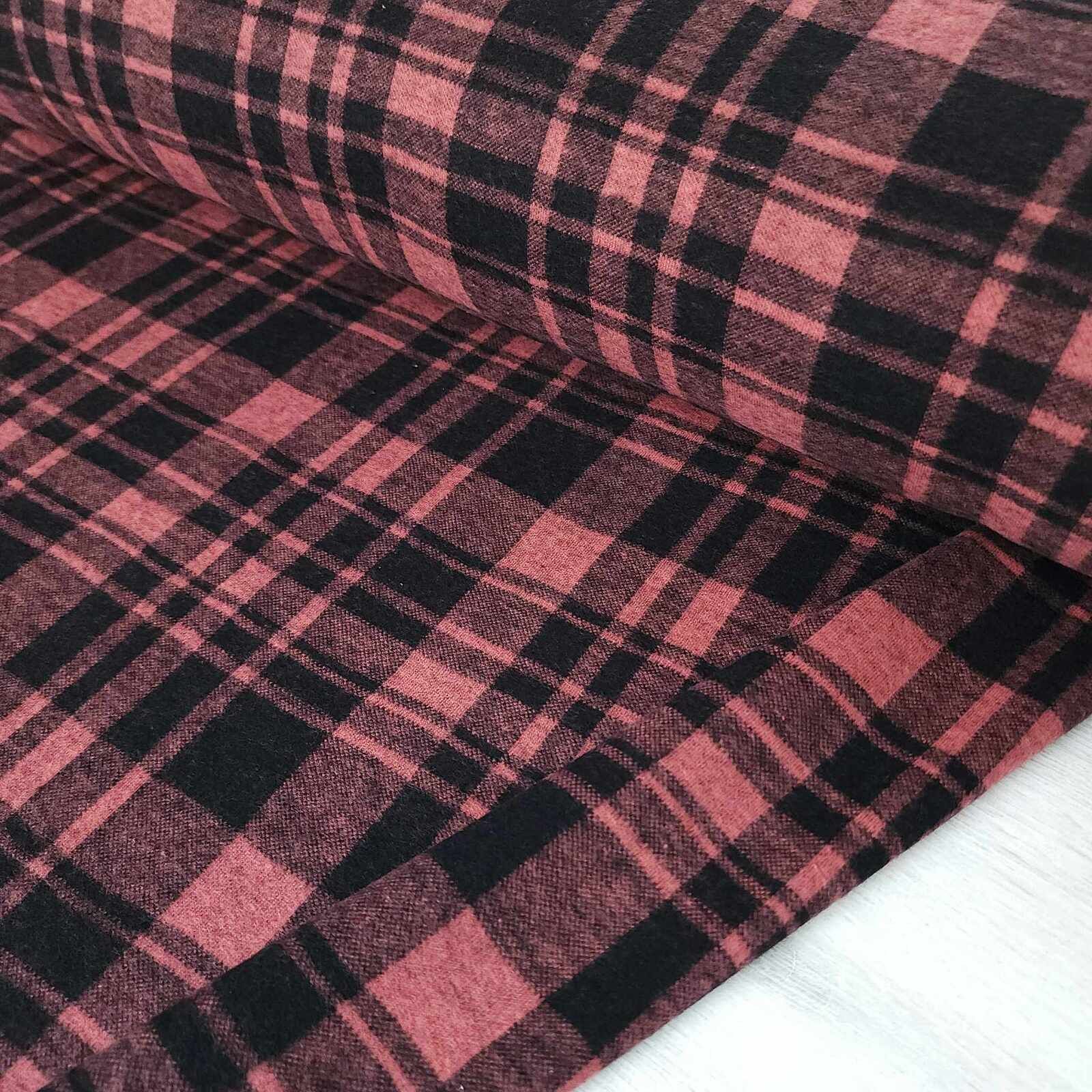 This cosy fabric is a 100% cotton knit flannel with an incredibly soft, brushed finish, offering both comfort and stretch. Made in a classic jacquard knitting style, it has a great stretch (range of 40% horizontally and 30% vertically), giving it excellent flexibility for garment making with a beautiful drape and soft handle.