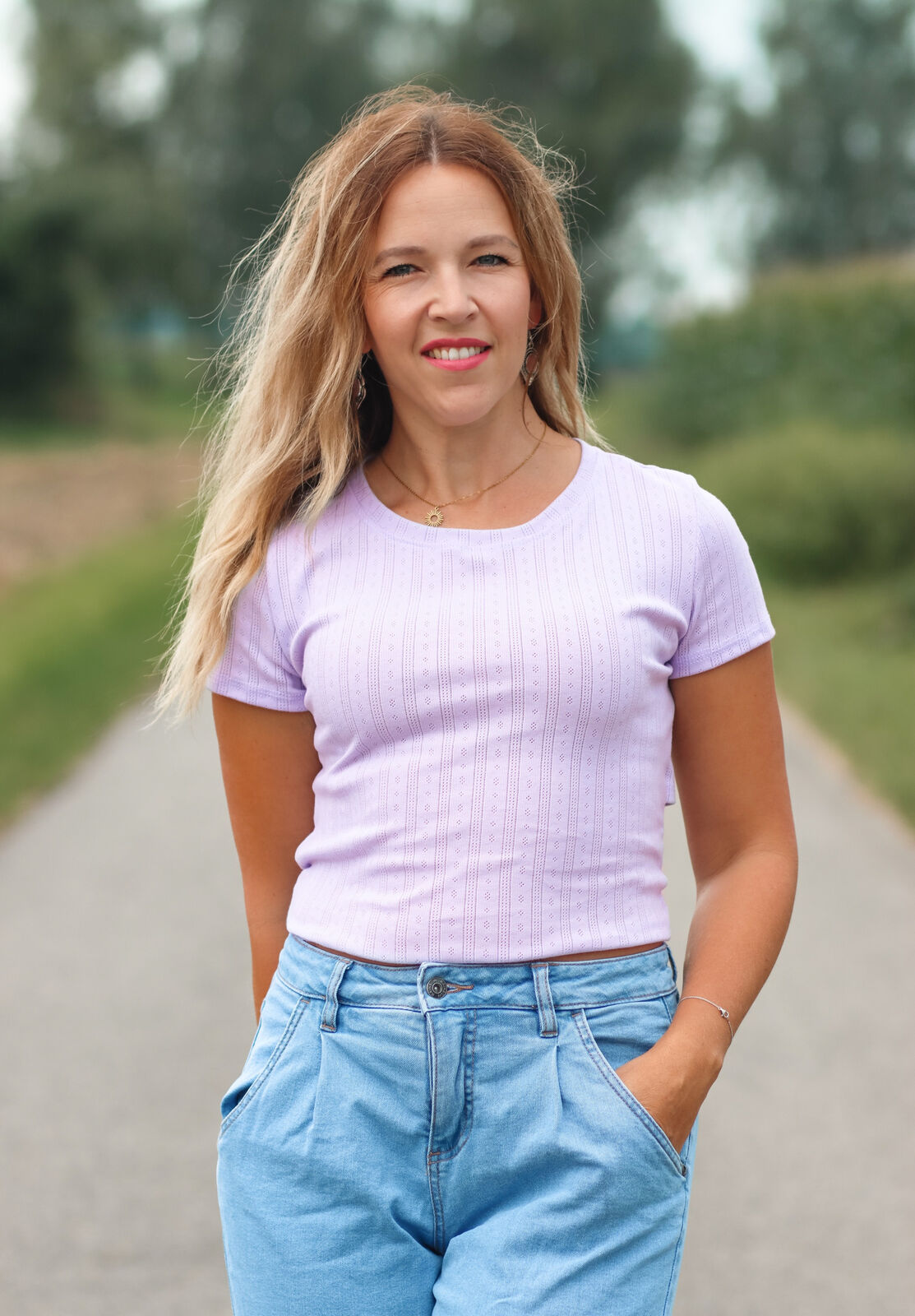 Despite the intricate design, the tiny holes in the fabric are so subtle that the material remains opaque. This airy, lightweight fabric feels gentle on the skin, offering all-day comfort with a soft drape and natural breathability.