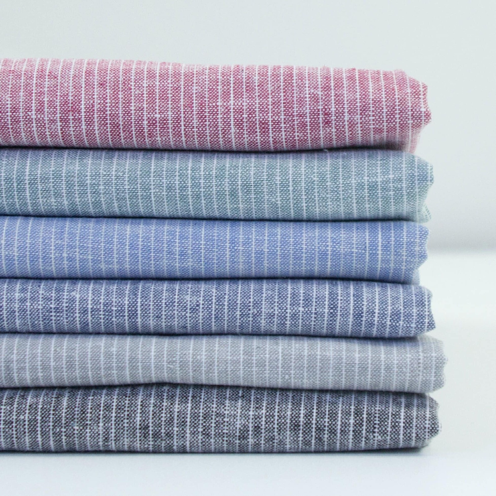 This linen and cotton blend fabric is a lightweight woven blend with a soft chambray look.