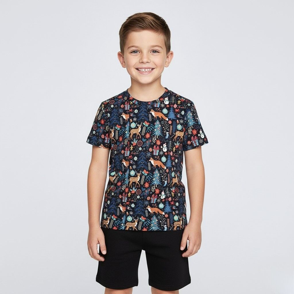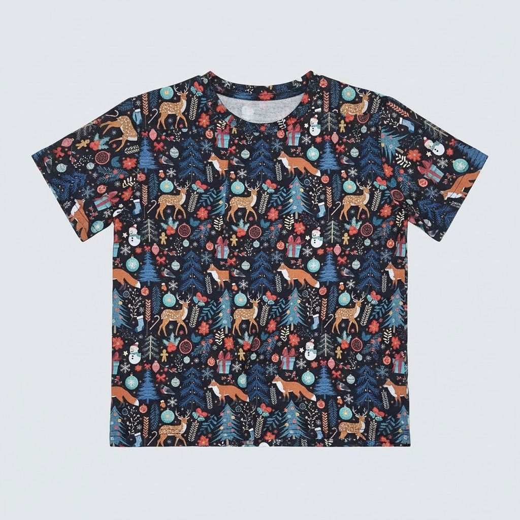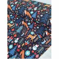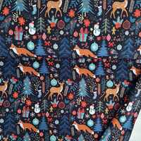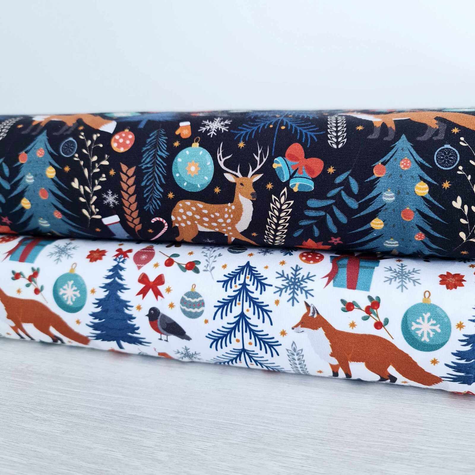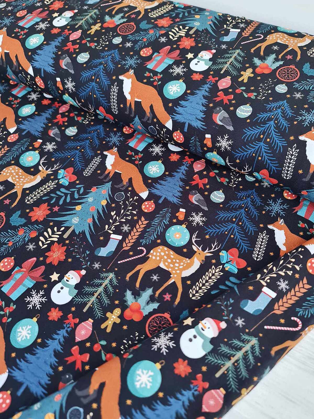 *REMNANT 144cm* European Cotton Elastane Jersey, GOTS Organic, Christmas Animals Black