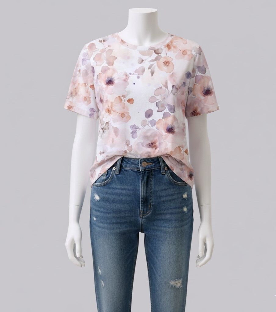 *REMNANT 147cm* European Cotton Elastane Jersey, Oeko-Tex, Faded Bloom