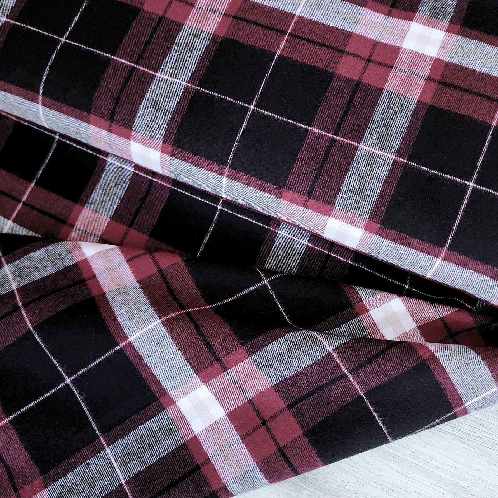 *REMNANT 164cm* European Cotton Flannel, Tartan Red/Black