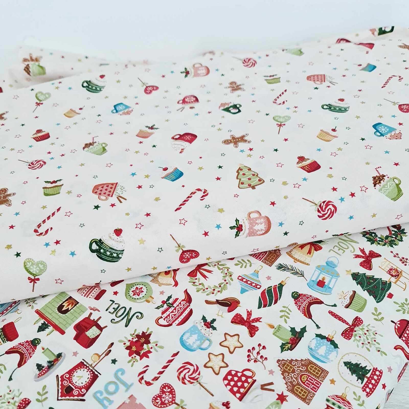 *REMNANT 38cm* Makower UK, Cosy Christmas, Sweet Treats Cream Metallic