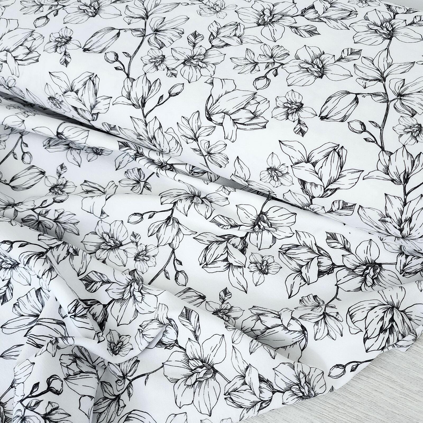 *REMNANT 58cm* European Cotton Elastane Jersey, GOTS Organic, Sketched Flora Black