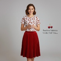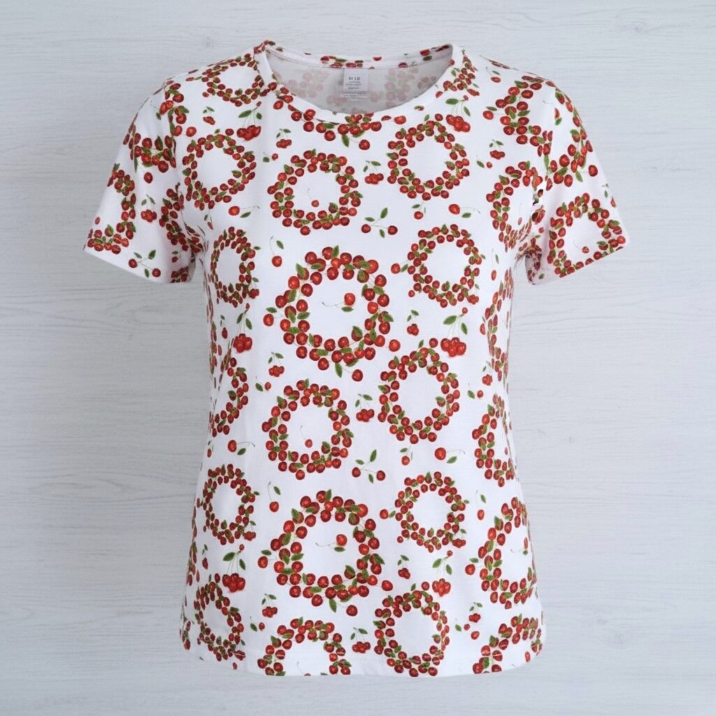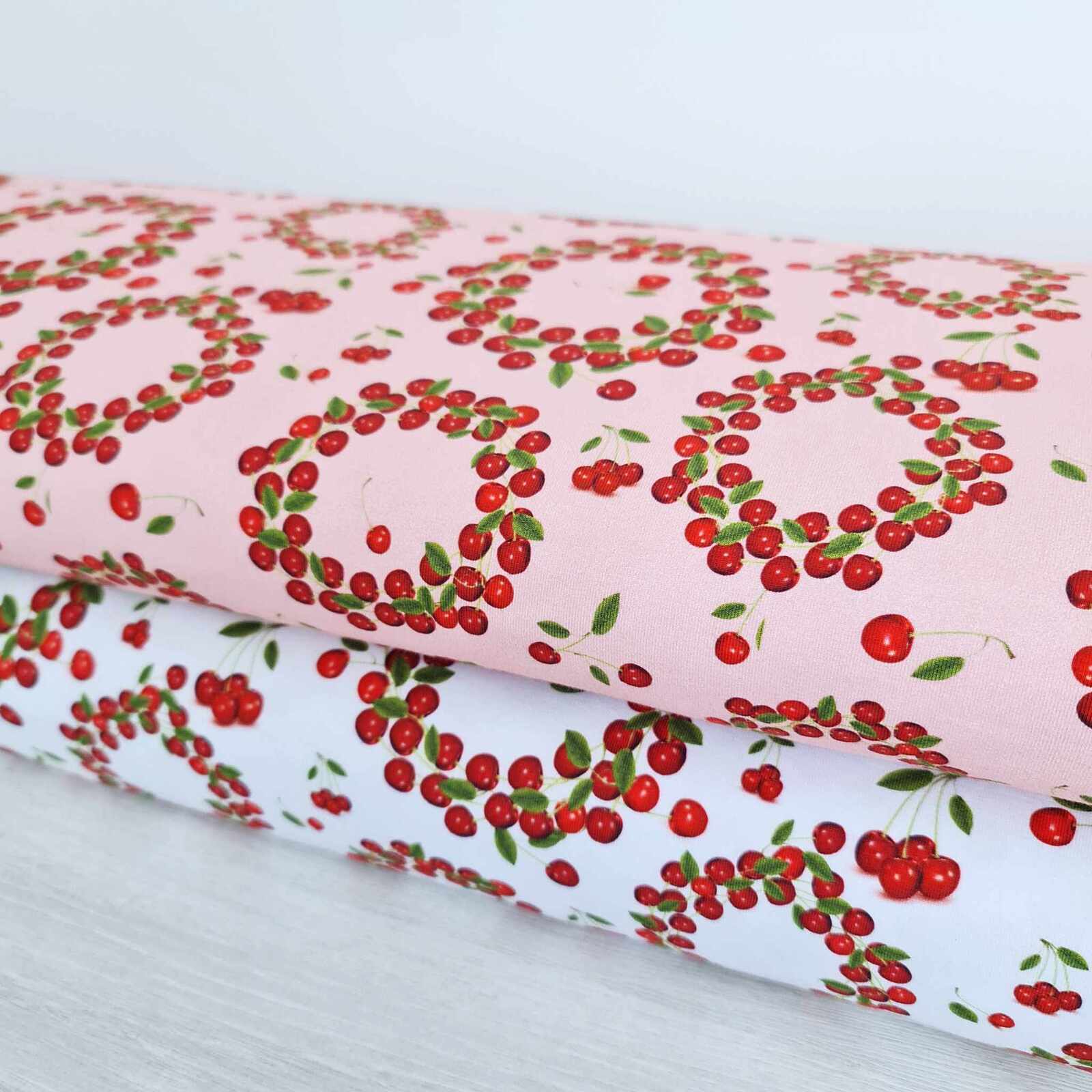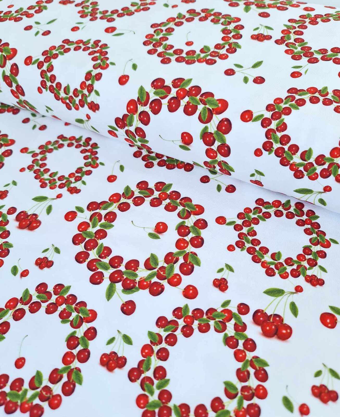 *REMNANT 60cm* European Cotton Elastane Jersey, GOTS Organic, Cherry Wreaths White