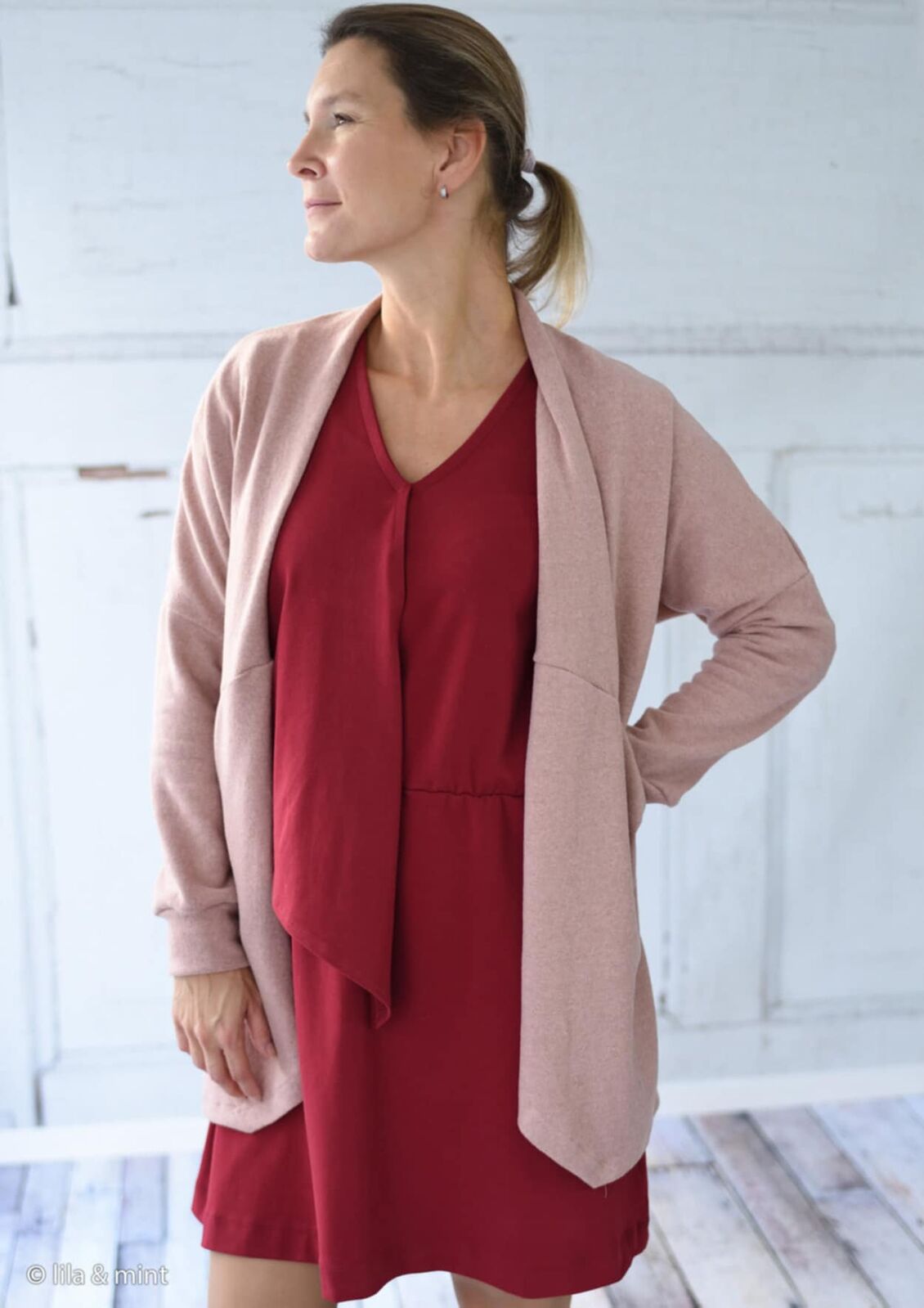 Our heavier winter weight variety of this knit: it is lovely and warm and perfect for winter sewing (we also carry a lighter weight version).