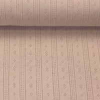 Our Cotton Pointelle Jersey knit is a beautifully soft, 100% cotton knit featuring a delicate and timeless pattern throughout of fine diamond shapes and vertical stripes.