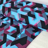 *REMNANT 82cm* European Knit, Oeko-Tex French Terry, Geometric Camouflage Blue