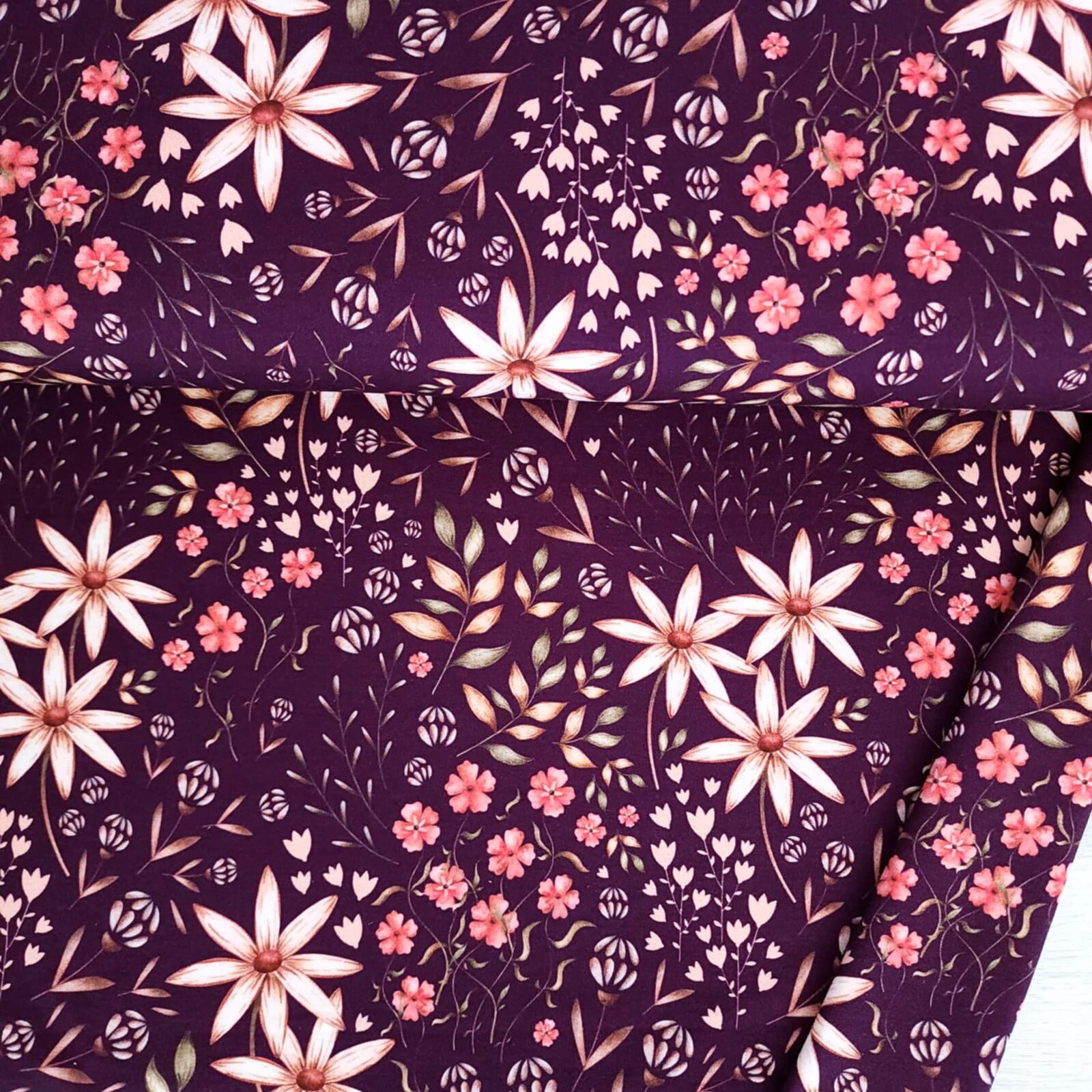 *REMNANT 87cm* European Knit, Oeko-Tex, French Terry, Autumn Meadows Dark Amethyst