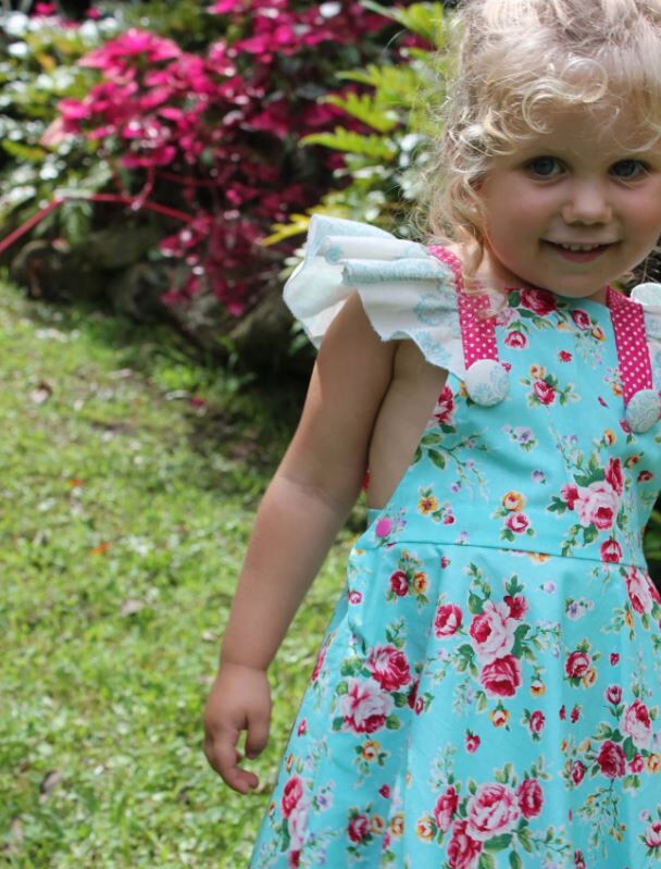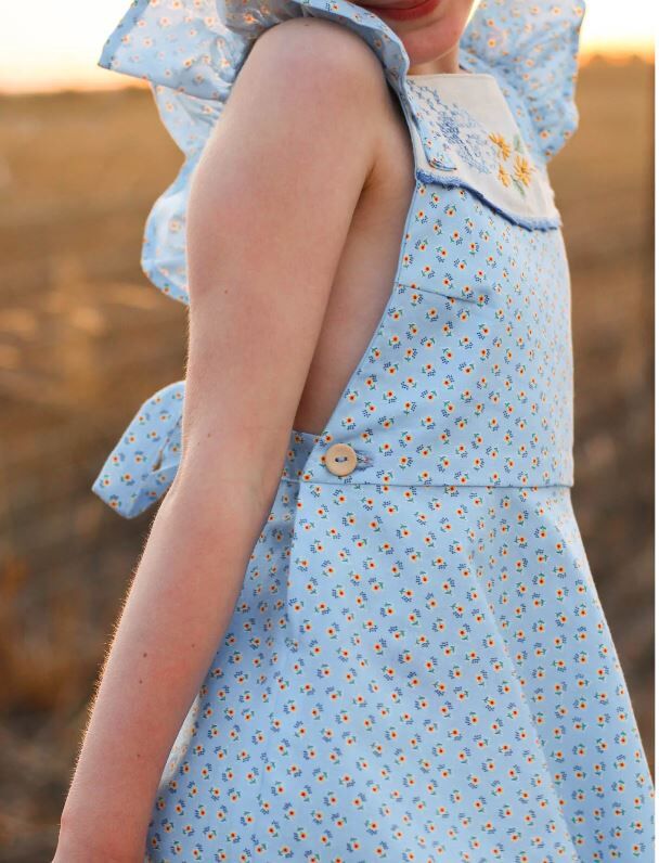 Description: Pretty, yet practical, the Butterfly Tea dress will delight your little butterfly. Your young lady will feel like a princess with the delicate ruffled “wings” and slightly flared skirt, so that she can twirl to her heart’s content and still be able to climb with the best of them.